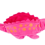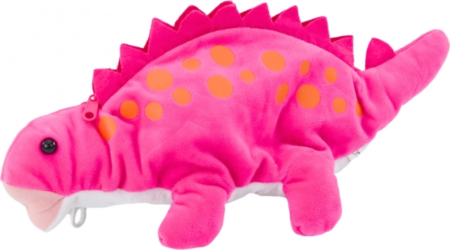 Ten pluszowy dinozaur w różowym kolorze zachwyci dzieci miękkim materiałem, a jednocześnie zaskoczy sprytną funkcją schowka. Na grzbiecie ma solidny zamek, dzięki czemu posłuży jako piórnik, kieszonka na drobiazgi lub mini torebka na tajne skarby.