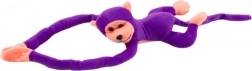 Ta fioletowa pluszowa małpka podbije serca dzieci i dorosłych. Dzięki miękkiemu pluszowi jest idealna do tulenia, a długie ręce i nogi z rzepami pozwalają łatwo zawiesić ją na łóżeczku, plecaku lub pozwolić, by objęła dłoń. Po naciśnięciu brzuszka rozlega się wesoły dźwięk, który wspiera interaktywną zabawę i rozwój wyobraźni.