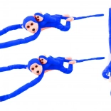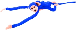Urocza pluszowa małpka z młodym w intensywnie niebieskim kolorze to idealny towarzysz dla dzieci. Ma miękkie, aksamitne wykonanie, długie kończyny z paskami na rzep do przymocowania do rączki lub łóżeczka oraz wysokość 70 cm, która zachęca do tulenia i zabawy.