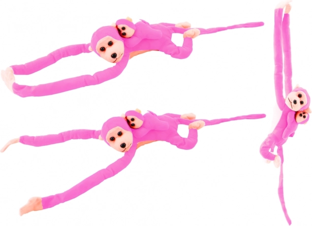 Ta duża różowa pluszowa małpka z uroczym młodym jest idealna do codziennej zabawy i kojących uścisków. Dzięki długim rękom i nogom z rzepem dzieci mogą przypiąć ją wokół nadgarstka, poręczy łóżeczka lub szkolnego plecaka – zabawa i dekoracja w jednym.