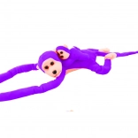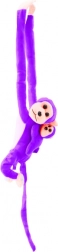 Fioletowy kolor i obecność młodego sprawiają, że małpka jest atrakcyjna dla dzieci i przyjemna dla oka.