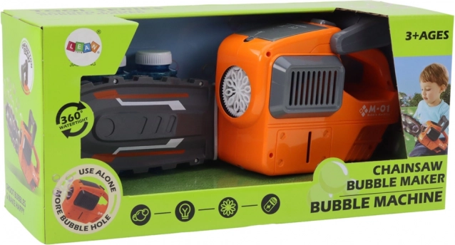 Piła łańcuchowa z pomarańczowymi bańkami mydlanymi