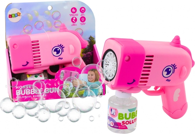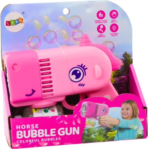 Zabawkowy pistolet do baniek mydlanych w kształcie uroczego różowego dinozaura ucieszy każde dziecko. Dzięki kompaktowym wymiarom świetnie sprawdzi się na spacery i wycieczki, a obsługa jest bardzo prosta – wystarczy nacisnąć przycisk, a wyleci mnóstwo kolorowych baniek. Dołączony płyn wkręca się bezpośrednio w pistolet, więc nic się nie rozlewa. Zabawka jest wykonana z trwałych i nietoksycznych materiałów, ma efekty świetlne LED, spełnia normy CE i EN71 i jest przeznaczona dla dzieci od 3 lat.