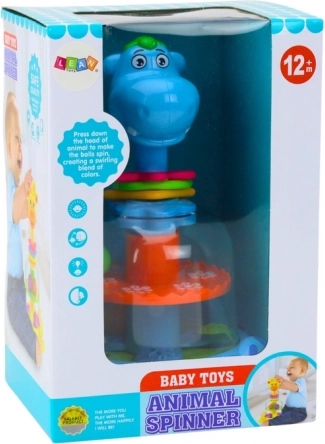 Uroczy bączek w kształcie hipcia zapewni dzieciom od 12 miesięcy godziny radości i nauki. Po naciśnięciu główki w środku zaczyna kręcić się kółko, a cztery kolorowe kuleczki podskakują – to fascynujący widok dla małych odkrywców. Zabawka jest wykonana z wytrzymałych, bezpiecznych materiałów, ma duże, łatwe do chwytania elementy i wspiera małą motorykę, koordynację oko–ręka oraz rozróżnianie kształtów i kolorów.