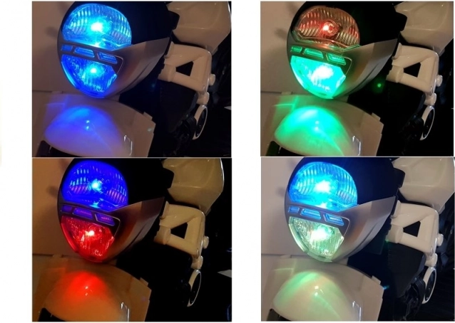 Przednie światło LED świeci w kilku kolorach dla atrakcyjnego wyglądu i lepszej widoczności podczas jazdy.