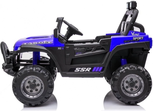 Stylowy dziecięcy elektryczny samochodzik w niebieskim kolorze oferuje małym kierowcom realistyczne wrażenia z jazdy. Dwa silniki 45 W zapewniają płynną moc, a miękkie koła EVA, siedzisko z eko skóry i pasy bezpieczeństwa dbają o komfort i bezpieczeństwo. Rodzice docenią pilot 2,4 GHz, a dzieci przednie światła LED oraz system audio z MP3/USB/SD. Odpowiedni dla dzieci od 3 lat, udźwig do 30 kg.