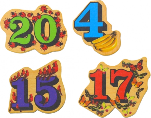 Zestaw drewnianych magnesów nie tylko uczy cyfr, ale także rozwija dziecięcą wyobraźnię i zdolności manualne.
