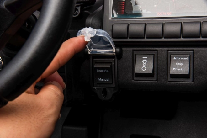 Auto wyposażono w realistyczne elementy, takie jak kierownica i siedzenie, które naśladują prawdziwą jazdę i zapewniają dzieciom pełnię wrażeń.
