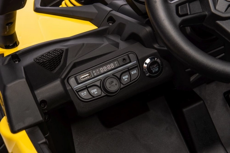 Samochód na baterie Buggy Can-Am to stylowe i zabawne autko dla dzieci, oferujące realistyczne wrażenia z jazdy w terenie. Jego wyraziste połączenie żółtego i czarnego koloru oraz duże, solidne opony zapewniają dzieciom godziny zabawy na świeżym powietrzu.