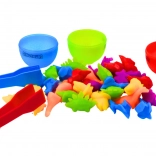 W zestawie znajdują się dziecięce pęsety, dzięki którym dzieci bezpiecznie trenują chwyt, precyzję i cierpliwość – umiejętności ważne przy nauce pisania i codziennej samoobsłudze. Zestaw idealnie nadaje się do samodzielnej oraz wspólnej zabawy z rodzicami lub rodzeństwem i oferuje proste aktywności matematyczne, takie jak liczenie i parowanie.