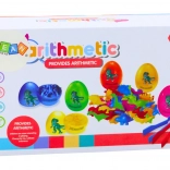 W każdym jajku kryje się mały dinozaur. Dzieci dopasowują figurki do koloru jajka, ćwicząc rozpoznawanie barw i rozwijając myślenie logiczne w formie zabawy.