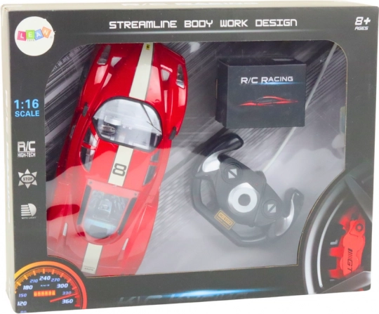 Sportowe auto RC w skali 1:16 łączy szybki wygląd, precyzyjne sterowanie i nowoczesną konstrukcję. Intuicyjny kontroler w kształcie kierownicy ułatwia zmiany kierunku i tempa, więc świetnie sprawdzi się przy slalomie i ostrych zakrętach w domu i na zewnątrz.