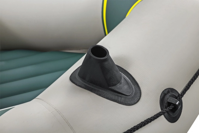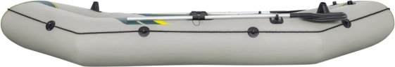 Model jest doskonały dla wędkarzy i do użytku rekreacyjnego: ma zintegrowane uchwyty na wędki, kieszeń/torbę na wyposażenie oraz dwa odpinane siedziska z poduszkami dla wygody podczas dłuższego pobytu na wodzie. Sterowanie ułatwiają wielokierunkowe mocowania wioseł, wokół biegnie lina bezpieczeństwa z przelotkami, a przenoszenie ułatwiają wytrzymałe uchwyty. Dzięki zaworom Boston i szybkozrzutowym zaworom pompowanie i spuszczanie powietrza zajmuje chwilę.