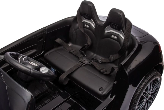 Samochodzik oferuje komfort dwóch siedzeń z pasami zabezpieczającymi, czytelny kokpit ze sportową kierownicą oraz solidną konstrukcję z wytrzymałego plastiku. Otwierane drzwi i wyraziste elementy świetlne podkreślają premiumowy wygląd luksusowego auta.