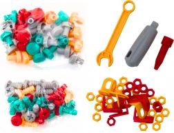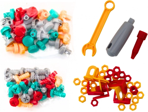 W zestawie są dalej klucz i śruby, które wspierają wyobraźnię i zdolności manualne. Stolik umożliwia różnorodne sposoby zabawy, od budowania po rywalizacyjne wędkowanie. Pomaga rozwijać zdolności motoryczne, myślenie logiczne i kreatywność.
