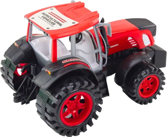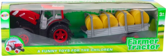 W zestawie znajduje się przyczepa z belami siana, co pozwala symulować rzeczywiste prace rolnicze. Napęd na tylne koła traktora dodaje dynamiki i realności całej zabawie, gdyż umożliwia poruszanie się traktora do przodu po rozruchu.