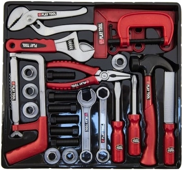 Plastowy zestaw narzędzi, idealny dla małych majsterkowiczów, oferuje świetną zabawę i możliwość pomocy przy naprawach w domu.