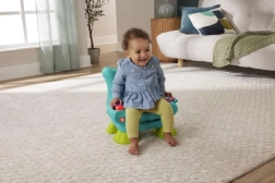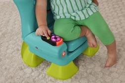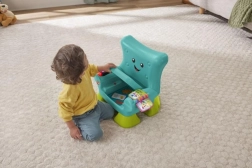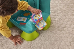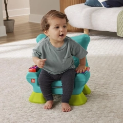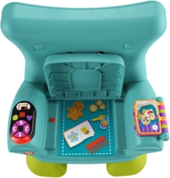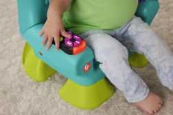 Krzesełko Smart Stages™ od Fisher-Price® to przytulne miejsce dla Twojego dziecka, w którym może się bawić i odkrywać świat. Interaktywne krzesełko rozpoznaje, kiedy dziecko siada lub wstaje, i reaguje na to wesołymi piosenkami oraz zwrotami! Gdy maluch usiądzie, czeka na niego mnóstwo atrakcji, w tym podświetlany pilot z przyciskami z liczbami i kształtami, przewracana książeczka oraz unoszona poduszeczka z ukrytymi niespodziankami. Trzy poziomy nauki Smart Stages™ zawierają ponad 120 piosenek, dźwięków i zwrotów, które podczas zabawy wprowadzają dzieci w świat kolorów, kształtów, liczb, liczenia oraz przeciwieństw. Za pomocą przycisku z globusem można wybrać język: polski, węgierski, czeski, słowacki lub angielski. Kolory i detale mogą się różnić. Wiek: 12m+.
