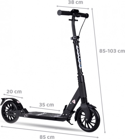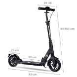 Ciesz się wygodną jazdą po mieście dzięki dużej składanej hulajnodze dla dzieci i dorosłych. Oferuje dwukomorowy układ hamulcowy, przednie zawieszenie, duże koła PU 200 mm oraz szybkie składanie jedną ręką. Dzięki regulowanej wysokości kierownicy 85–103 cm, solidnej aluminiowej konstrukcji i nośności do 100 kg idealnie sprawdzi się w codziennych dojazdach i w czasie wolnym.