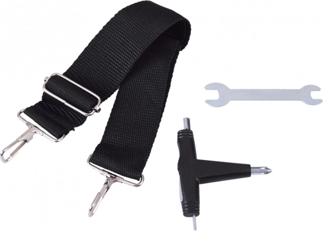 - Pasek do przenoszenia (długość 70 cm), klucze imbusowe, klucz płaski, stopka