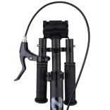 Ta solidna miejska hulajnoga wyróżnia się połączeniem komfortu i bezpieczeństwa. Ręczny hamulec tarczowy w połączeniu z hamulcem ciernym w błotniku i odblaskiem zwiększają kontrolę i widoczność. Amortyzacja niweluje nierówności, a w duecie z dużymi kołami zapewnia płynną jazdę po asfalcie i mniej równych chodnikach.