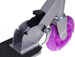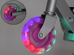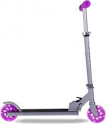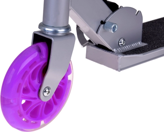 Lekka i wytrzymała składana hulajnoga dla dzieci z świecącymi kołami LED, regulowaną wysokością kierownicy i antypoślizgowym podestem. Łatwo się składa, wygodnie przenosi, a dzięki nożnemu hamulcowi-błotnikowi jest bezpieczna nawet przy szybszej jeździe. Idealna na spacery do parku, ścieżki rowerowe i na wakacje.