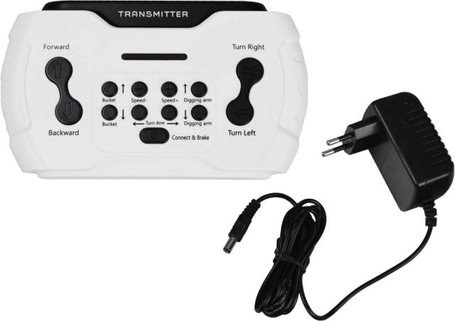 - 2,4 GHz, 3 poziomy prędkości, kierunek przód/tył, STOP, sterowanie ramieniem