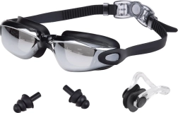 Zestaw okularów pływackich został zaprojektowany z myślą o jakości i komforcie. Okulary posiadają kolorowe soczewki poliwęglanowe o optycznej jakości, które zapewniają 100% ochronę przed promieniowaniem UV. Dzięki warstwie przeciwmgielnej masz zawsze zapewniony czysty widok pod wodą.