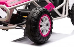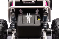 Pojazd wyposażony jest w komfortowe siedzisko oraz elementy bezpieczeństwa, które zapewniają przyjemną i bezpieczną jazdę dla Twojego dziecka.
