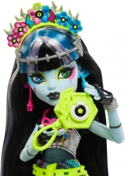 Oprócz świetnego stroju nie brakuje tematycznych dodatków do festiwalowych historii: „hot dog”, napój energetyczny, aparat do zdjęć z przyjaciółmi, bilet na Monster Fest, bransoletka na nadgarstek i muzyczny plakat. Lalka ma ruchome stawy dla łatwego pozowania i fotografowania. Sprzedawana oddzielnie; kolory i detale mogą się różnić. Lalka nie stoi samodzielnie.