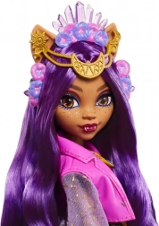 Lalka MONSTER HIGH Clawdeen Wolf – Monster Fest wnosi zabawę, styl i odrobinę upiornej słodyczy do każdej dziecięcej kolekcji. Clawdeen lśni w topie i spódnicy z motywem konstelacji, uzupełnionych o „kryształową” opaskę, złoty pasek i miękkie futrzane detale. Dzięki ruchomym stawom z łatwością wykonuje taneczne układy i festiwalowe pozy przed obiektywem.