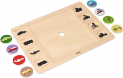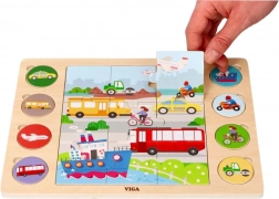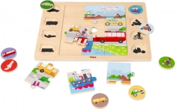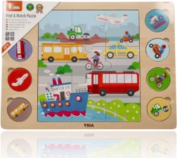 Drewniany zestaw puzzli VIGA „Znajdź i dopasuj – środki transportu” łączy radość zabawy ze sprytną nauką. Pośrodku układa się 9 dużych elementów w obrazek, a następnie dziecko dopasowuje 8 okrągłych żetonów z pojazdami do ich sylwet na planszy. Wspiera naturalną naukę poprzez zabawę i wzmacnia pewność siebie dziecka przy każdym poprawnym dopasowaniu.