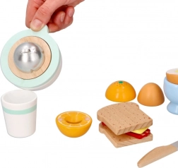 Ten starannie wykonany drewniany zestaw śniadaniowy jest idealny na pierwsze kuchenne przygody. Dzieci przygotują własne śniadanie – od krojenia pieczywa po wyciśnięcie świeżego soku. Realistyczne detale i przyjemne pastelowe kolory zachęcają do zabawy i rozwijają wyobraźnię.