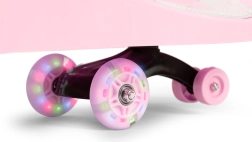 Gumowe koła zapewniają cichą i płynną jazdę oraz nie rysują podłogi, dzięki czemu jeździk jest idealny do mieszkania i ogrodu. Zintegrowane diody LED w kołach zapalają się w trakcie jazdy i zwiększają widoczność o zmierzchu, co daje więcej zabawy i bezpieczeństwa.