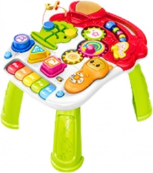 - Panel muzyczny: Organki umieszczone na dolnej stronie stolika uczą podstaw muzyki, a wesoła melodia motywuje dziecko w nauce chodzenia.