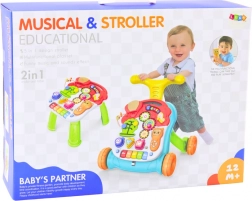 Interaktywny stolik edukacyjny i chodzik 2w1 zapewnia rozrywkę i naukę, wspiera rozwój dziecka na wielu poziomach, od zdolności poznawczych i motorycznych po muzyczne i sensoryczne postrzeganie.
