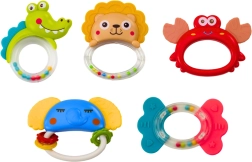 Zestaw oferuje grzechotki w kształcie krokodyla, lwa, kraba, słonia i ryby, które są jaskrawo zabarwione, by stymulować percepcję wzrokową.