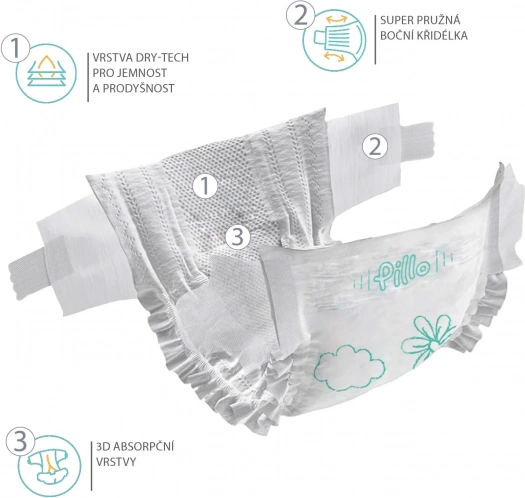 Natutalne składy bez kremu, perfum i lateksu gwarantują, że Twoje dziecko jest bezpieczne przed alergiami i podrażnieniami. Dzięki naszym hipoalergicznym pieluchom, idealnym dla wrażliwej dziecięcej skóry, możesz być spokojny, że Twoje dziecko pozostanie suche i czuje się komfortowo nawet do 12 godzin. Innowacyjna technologia DrywayTM, oparta na trzech kanałach odprowadzających wilgoć, zapewnia szybkie wchłanianie płynów, a tym samym uczucie komfortu i suchości.