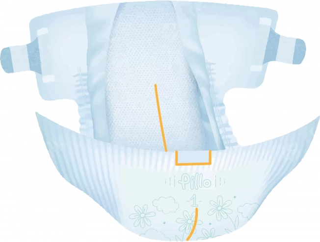 • Wskaźnik wilgotności: żółty pasek w kontakcie z wilgocią zmienia kolor na niebieski, sygnalizując czas na przewinięcie.