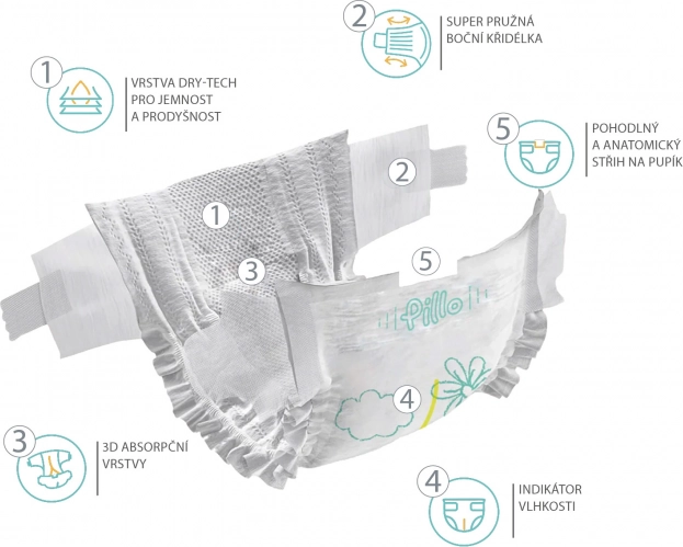 Naturalny skład bez kremu, substancji zapachowych i lateksu gwarantuje, że Twoje dziecko jest bezpieczne przed alergiami i podrażnieniami. Dzięki naszym hipoalergicznym pieluszkom, idealnym dla wrażliwej skóry dziecka, możesz mieć pewność, że Twoje maleństwo pozostanie suche i wygodne aż do 12 godzin. Innowacyjna technologia DrywayTM opiera się na trzech kanałach odprowadzających, które zapewniają szybkie wchłanianie płynów, gwarantując uczucie komfortu i suchości.