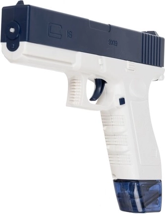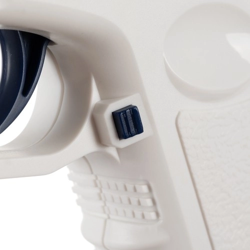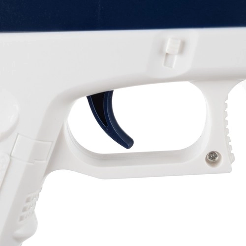 Zapomnij o ręcznym pompowaniu — wystarczy nacisnąć i trzymać spust, a pistolet odda szybkie, automatyczne pojedyncze strzały wodne. Niska masa i wyważony środek ciężkości ułatwiają celowanie, a uszczelnione zbiorniki zapobiegają przeciekaniu. Wymianę zbiorników przyspiesza boczny niebieski przycisk z blokadą.