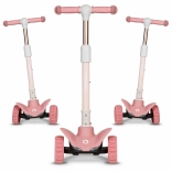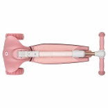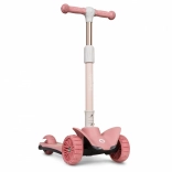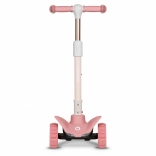 LIONELO Timmy Pink Rose to lekka i bezpieczna dziecięca hulajnoga zaprojektowana do komfortowych pierwszych przejażdżek. Dwa duże przednie koła i jedno tylne zapewniają doskonałą stabilność, a skręcanie lean-to-steer (sterowanie przechyłem) wspiera rozwój równowagi i motoryki. Światła LED w kołach aktywują się podczas ruchu, a LED-owe podświetlenie podestu zwiększa widoczność i zabawę.