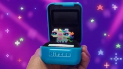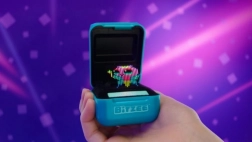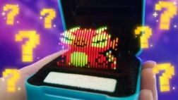 - Niebieskie pudełko z pikselowym/animowanym wyświetlaniem postaci