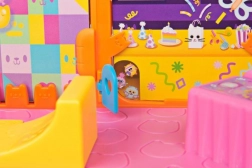 Rozkręć imprezę w wielkim stylu! Pokój Imprezowy Kociego Domku GABBY oferuje rampę do jazdy, scenę do występów i „lodowisko”. Dwie szczegółowe figurki z działającymi kółkami ożywią każdy występ, a kolorowe akcesoria dodadzą odpowiedni imprezowy klimat. Interaktywne elementy fidget na ścianie wspierają zabawę sensoryczną i pomagają utrzymać uwagę dzieci.