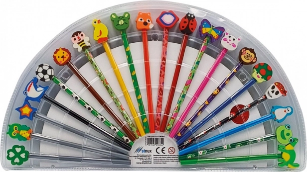 Odkryj świetny zestaw dla dzieci, który wspiera wyobraźnię i motorykę małą. Kredki są ozdobione wesołymi wzorami, a każda ma na końcu praktyczną gumkę w różnych kształtach – dzięki temu łatwo poprawisz drobne błędy podczas rysowania.