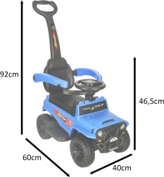 Praktyczny pchacz 2 w 1 rośnie razem z dzieckiem: najpierw służy jako bezpieczny pojazd pchany z rączką prowadzącą dla rodzica, później jako samodzielny jeździk. Stabilna plastikowa konstrukcja oraz przemyślane detale zapewniają komfort i bezpieczeństwo podczas każdej przejażdżki.