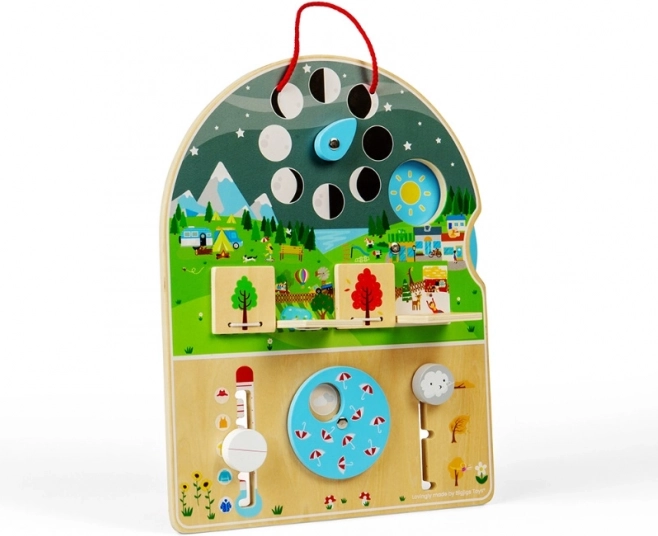 Ta interaktywna drewniana tablica jest idealnym narzędziem dla dzieci zainteresowanych przyrodą i chcących lepiej zrozumieć, co dzieje się w naszym świecie. Wykonana z wysokiej jakości i odpowiedzialnie pozyskanego drewna, tablica oferuje różnorodne elementy edukacyjne, które przedstawiają różne warunki meteorologiczne: słonecznie, pochmurno, deszcz, śnieg i wiatr.
