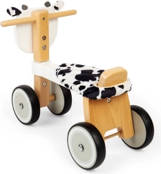 Rowerek biegowy ma zabawny design w kształcie krówki, który wspiera dziecięcą wyobraźnię i pomysłowość.