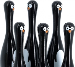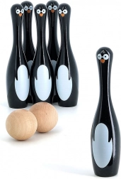 Zestaw zawiera sześć kręgli w kształcie pingwinów oraz dwie drewniane kule. Ta gra nie tylko dostarcza godzin zabawy, ale także pomaga rozwijać motorykę i zręczność. Kręgle zostały wykonane we Francji przy użyciu tradycyjnej techniki lakierowania, zapewniającej wysoką jakość i trwałość.