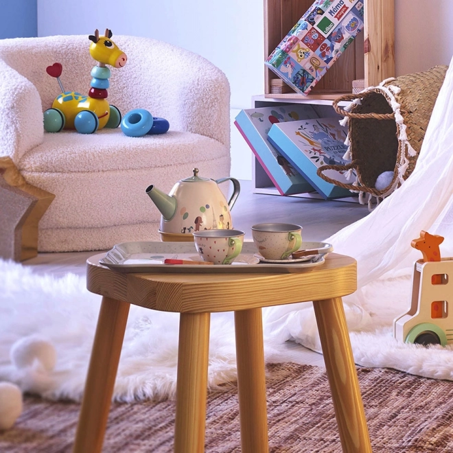 Serwis do herbaty marki Vilac to doskonałe narzędzie do rozwijania umiejętności społecznych i wyobraźni dzieci. Czajniczek jest wyposażony w pozytywkę, która po przechyleniu odtwarza melodię „Sto lat”. Ta zabawka nie wymaga baterii, co jest ekologiczne i praktyczne.